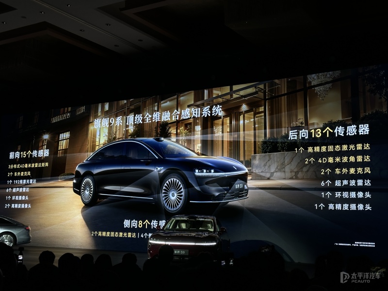 其次在智能辅助驾驶方面,享界S9系列全系搭载华为ADS 4辅助驾驶系统,标配4颗激光雷达(1个192线激光雷达+3个高精度固态激光雷达)、5个4D毫米波雷达、11个摄像头和12个超声波雷达和4个车外麦克风,享受鸿蒙智行目前最高待遇,与尊界S800和问界M9保持一致的硬件规格,彰显9系旗舰地位。