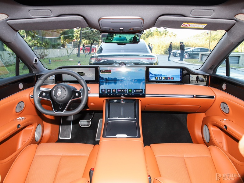 内饰设计上,新车明显更注重细节的打造,大量木质纹理饰板的出现,有效提升了整车的豪华感,采用天然白栓木。大尺寸悬浮中控屏、抬头影像和仪表屏又加强了车辆的科技感,中控台下方还配置了无线充电面板。此外像带遮阳帘的全景天幕、零重力座椅、雅马哈音响系统均有配备。座舱最大的看点则是搭载了华为鸿蒙智能座舱5.0系统。