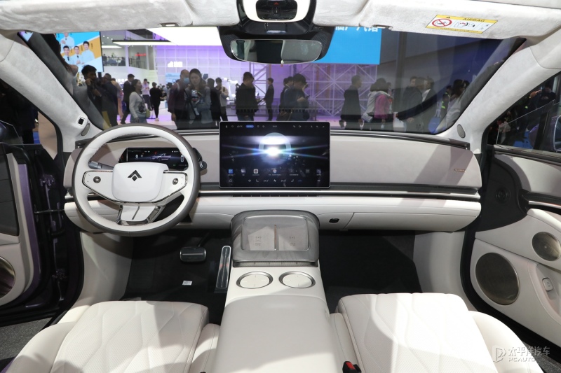作为本次亮相最大的看点,昊铂A800的内饰得到了首次亮相。整体内饰设计是典型的新能源风格,没有太多的夸张和个性,以简约舒适家用为主。新车采用10.25英寸的全液晶仪表与14.6英寸的中控大屏,搭载华为鸿蒙座舱系统,支持多设备协同和OTA升级。