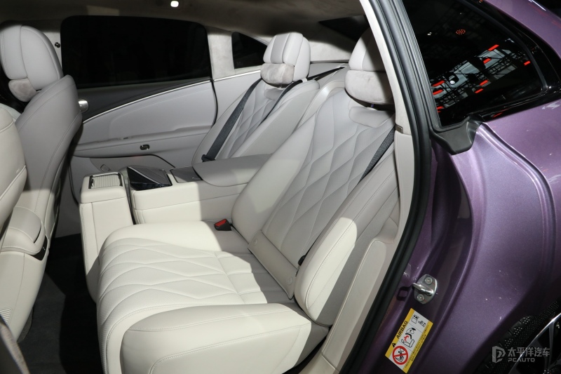可以看到,中控台部分配备了两个50W手机无线充电。此外广汽昊铂A800还配备了64色可调氛围灯、27英寸W-HUD、14扬声器燕飞利仕音响、主动降噪等配置。座椅则采用Nappa真皮材质包裹,包含了前排8向电动调节以及按摩功能,后排支持 4 向电动调节与座椅加热,后排中央扶手集成触控屏。